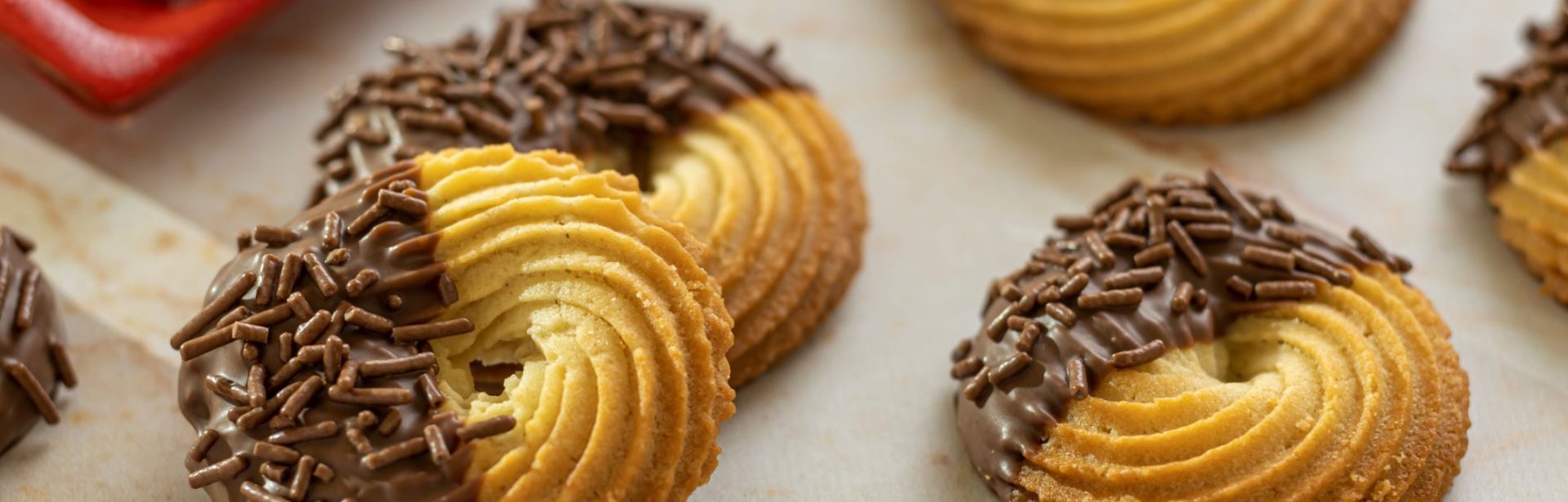 - Preaqueça o forno a 150°C e leve a assadeira para assar em forno baixo. Asse por aproximadamente 20 minutos ou até que as bordas dos biscoitos comecem a dourar. Depois, retire os biscoitos do forno e deixe esfriar