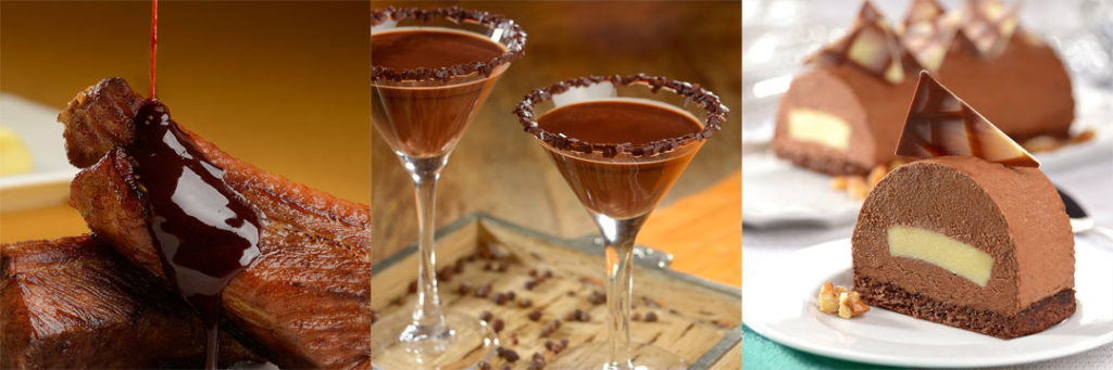 Para inovar, invista em um prato principal ousado feito com chocolate amargo: a suculenta e deliciosa Costela com Molho de Chocolate e Jabuticaba! O jantar ainda pode ser brindado com o intenso Doce Veneno e finalizado com a Sobremesa Noir, perfeita para os dias quentes do fim de ano.