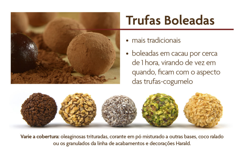 Você já sabe que boa parte do sucesso das trufas deve-se às ganaches que derretem na boca e produzem uma sensação deliciosa incomparável. Agora, vamos ver como os diferentes tipos de finalização contribuem para dar personalidade e podem reforçar o sabor de seus doces.