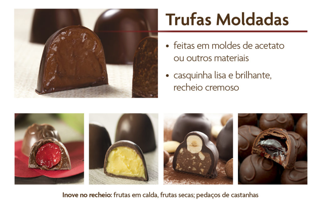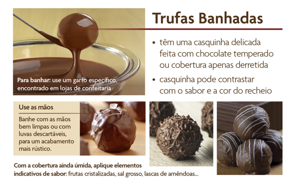 Siga o esquema abaixo para saber como obter trufas boleadas, banhadas ou moldadas.