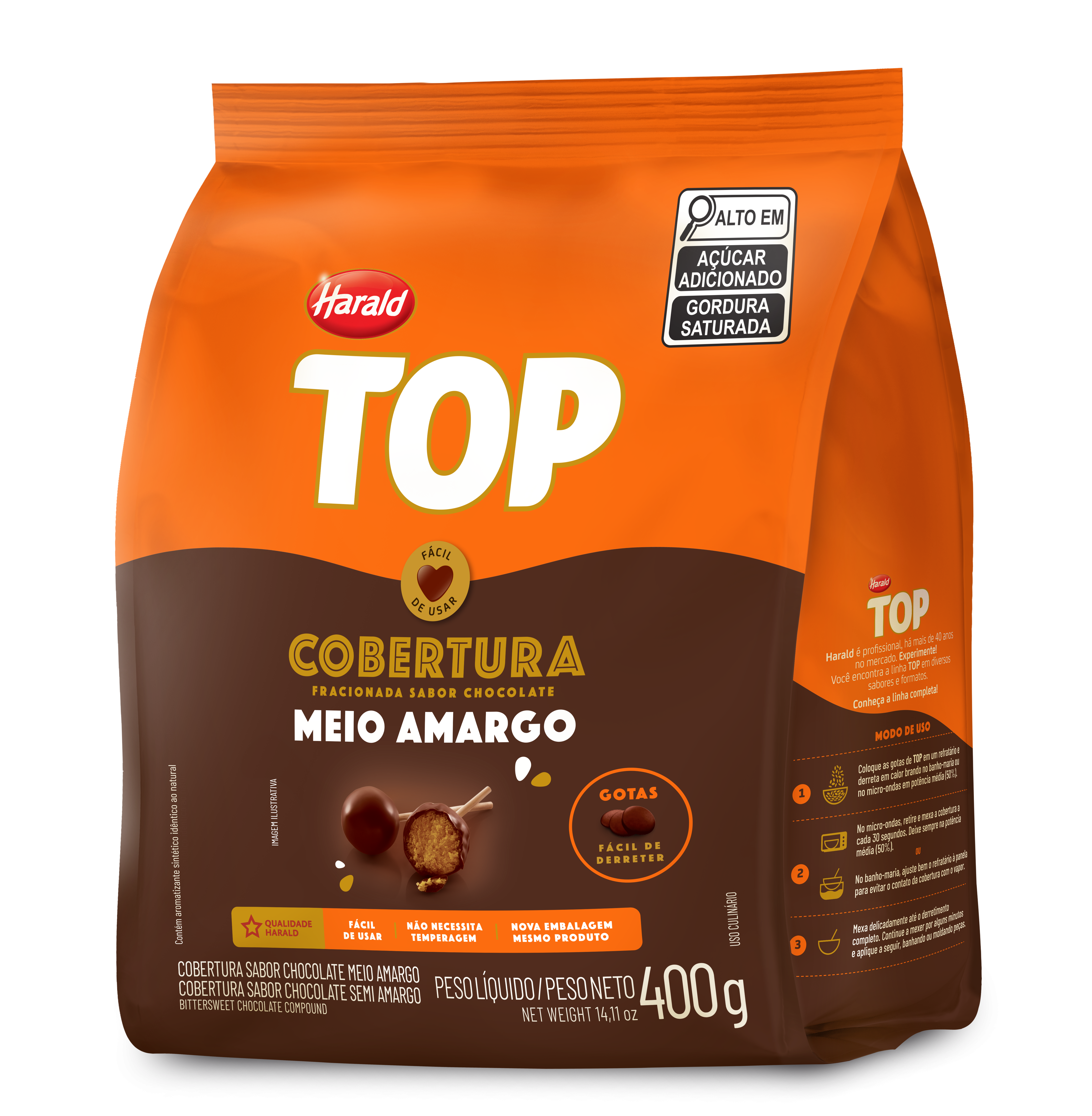 Cobertura TOP sabor Chocolate Meio Amargo em Gotas 400g