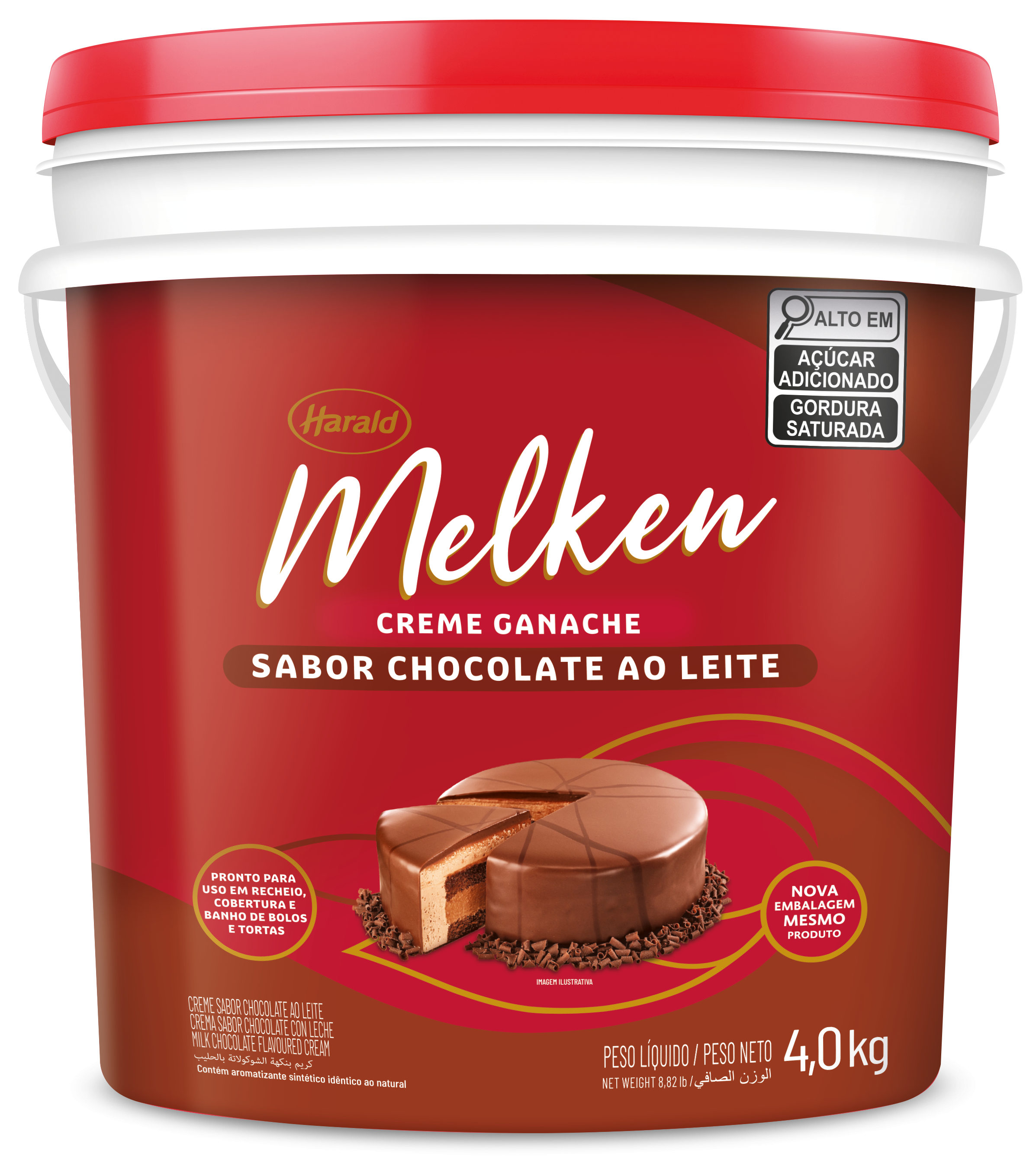 As Ganaches Melken são recheios e coberturas ideais para bolos e tortas, além de substituírem a manteiga e o açúcar em massas doces, trazendo o sabor do chocolate. A embalagem de 4 kg é ideal para uso profissional.