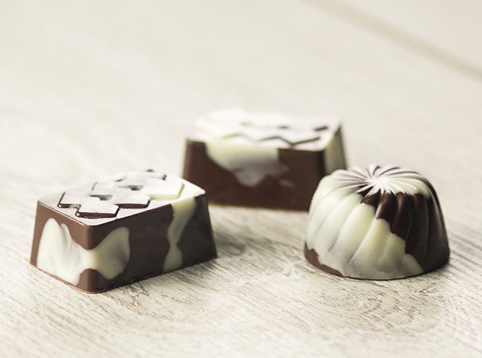 Casquinha: Espalhe um pouco do Unique Branco temperado com as pontas dos dedos no interior de cada cavidade de um molde para bombons, formando uma camada fina para dar o efeito de marmorizado. Leve à geladeira por cerca de 10 minutos. Enquanto isso, derreta e tempere o Unique Amargo. Retire o molde da geladeira e preencha as cavidades dos bombons com o chocolate Unique Amargo. Em seguida, vire-o sobre um refratário para escorrer o excesso. Leve o molde à geladeira para secar por alguns minutos. Preencha as cavidades do molde com o recheio e cubra com chocolate temperado. Remova o excesso com uma espátula e leve novamente à geladeira por cerca de 10 minutos. Para ter um bom acabamento, passe novamente uma camada de chocolate temperado sobre o molde e cubra-o com uma folha de acetato. Passe a espátula, apertando-a bem sobre o acetato, para retirar o excesso de chocolate. Leve o molde novamente à geladeira por cerca de 20 minutos ou até que esteja opaco. Retire delicadamente a folha de acetato, desenforme os bombons e disponha-os em caixinhas para presente.