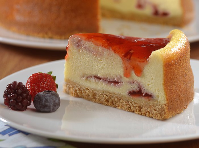 Faça a decoração: gele o cheesecake por pelo menos 2 horas, cubra com o Recheio de Frutas Vermelhas, decore com algumas frutas frescas e sirva logo em seguida.