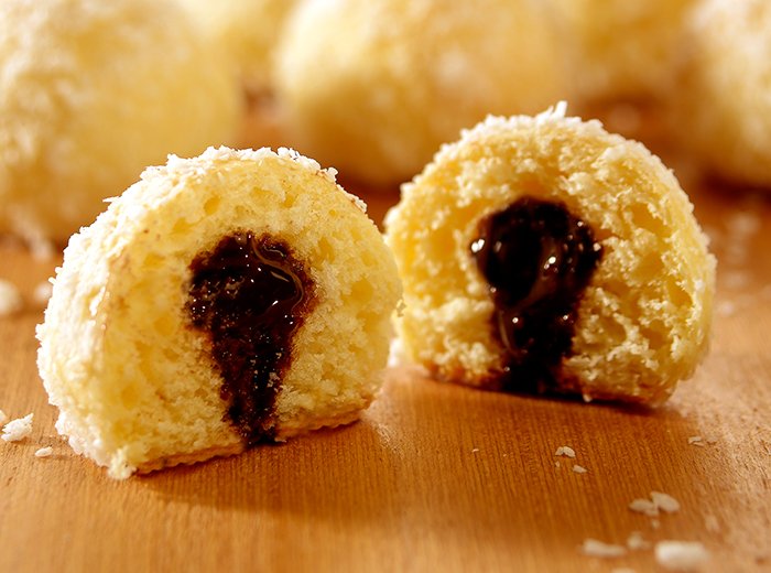 Finalização: misture o leite com o leite condensado. Mergulhe os pãezinhos nessa calda e, em seguida, passe-os no coco ralado. Guarde-os em local fresco até o momento do consumo.