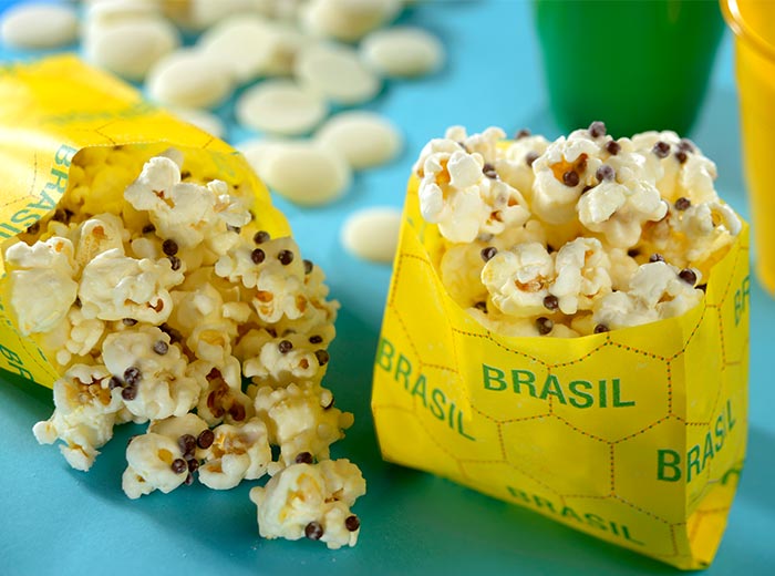 Derreta o Top Branco. Coloque a pipoca em uma tigela grande, adicione o Top derretido e o Cereal Ball e mexa delicadamente para cobrir as pipocas. Despeje em mármore ou em uma assadeira grande, separando bem as pipocas, e deixe a cobertura secar por 30 minutos. Solte as pipocas com uma espátula e sirva em seguida, ou guarde em um pote bem fechado para manter a crocância.