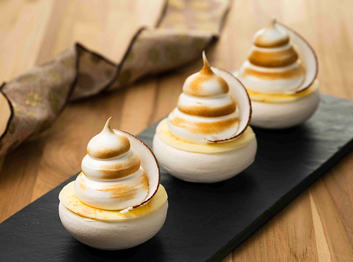 Se tiver um maçarico à disposição, doure o merengue. Finalize com lâminas de coco fresco queimado.