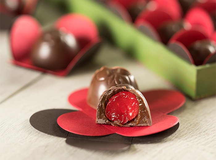 Recheio: com a ganache em um saco de confeitar, preencha cada cavidade do molde com uma pequena porção e coloque uma cereja em seguida. Essa combinação vai destacar a intensidade e cremosidade do chocolate, além de proteger a casquinha da umidade da cereja.